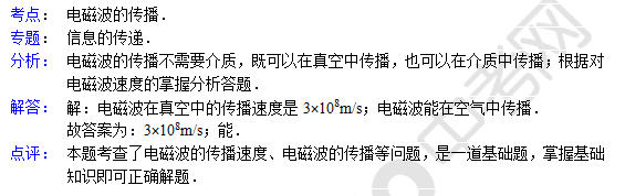 中考物理天天练试题及解析:电磁波的传播(6月7日)(2)