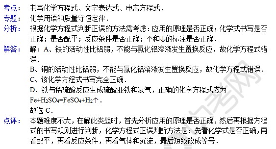 中考化学天天练试题及答案:化学方程式的书写规则(6月9日)(2)