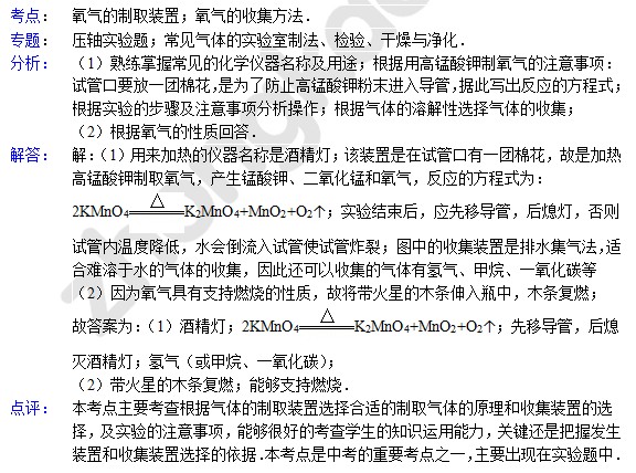 中考化学天天练试题及答案:氧气的制取装置及收集方法(6月10日)(2)