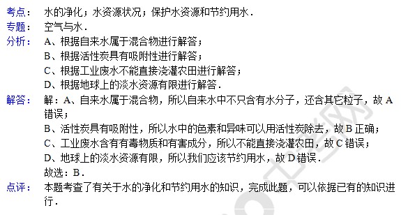 中考化学天天练试题及答案:水的净化(6月13日)(2)