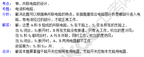 中考物理天天练试题及解析:串、并联电路的设计(6月17日)(2)