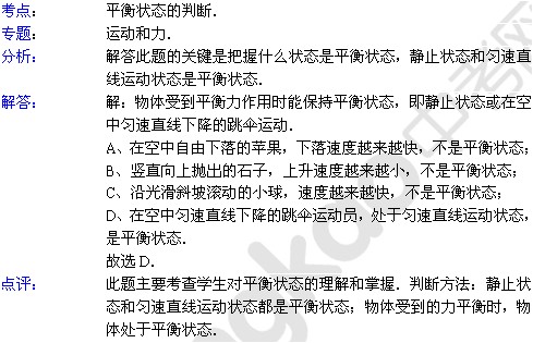 中考物理天天练试题及解析:平衡状态的判断(7月02日)(2)