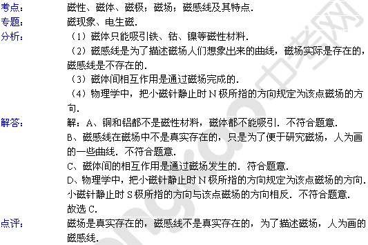 中考物理天天练试题及解析:磁感线(7月05日)(2)