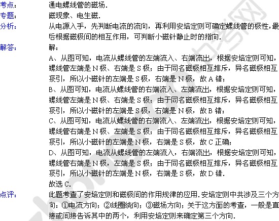 中考物理天天练试题及解析:通电螺线管的磁场(7月06日)(2)