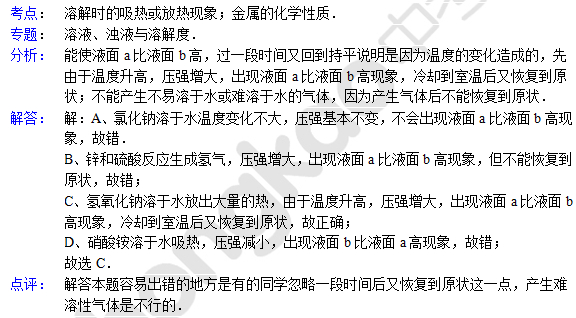 中考化学天天练试题及答案:溶解时的吸热或放热现象(7月8日)(2)