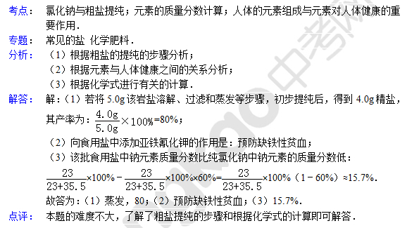 中考化学天天练试题及答案:元素的质量分数计算(7月11日)(2)