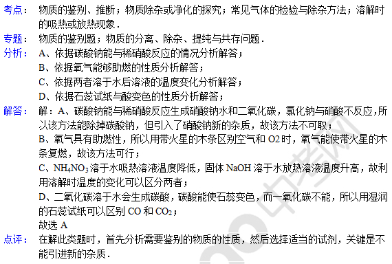 中考化学天天练试题及答案:物质的鉴别、推断(7月13日)(2)