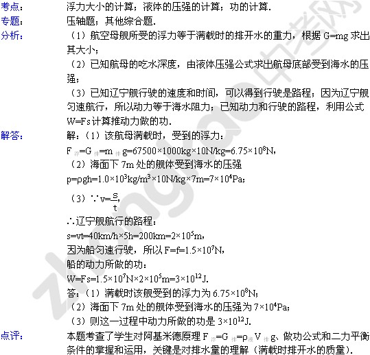 中考物理天天练试题及解析:液体的浮力 压强(7月14日)(2)