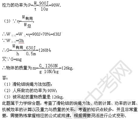 中考物理天天练试题及解析:滑轮组的机械效率(7月15日)(3)
