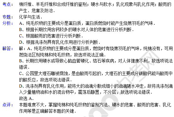 中考化学天天练试题及答案:化学与生活(7月16日)(2)