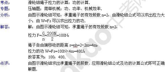 中考物理天天练试题及解析:滑轮组绳子拉力(7月17日)(2)