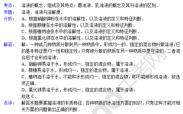 中考化学天天练试题及答案:溶液、浊液与溶解度(7月17日)(2)