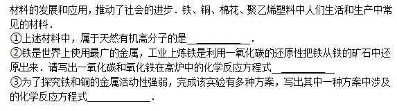 中考化学天天练试题及答案:铁的冶炼(7月19日)