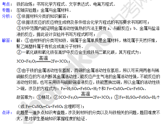中考化学天天练试题及答案:铁的冶炼(7月19日)(2)