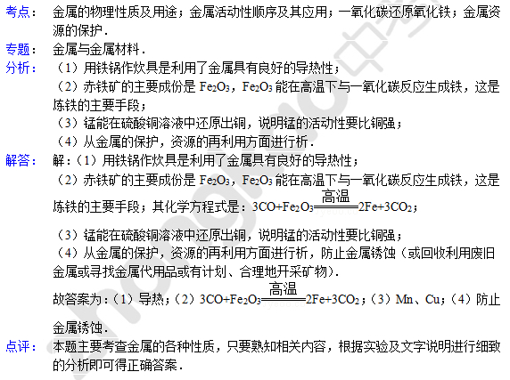 中考化学天天练试题及答案:金属的物理性质及用途(7月24日)(2)