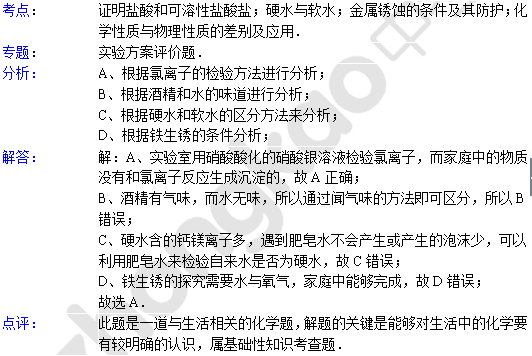 中考化学天天练试题及解析:盐酸和可溶性盐酸盐(8月02日)(2)