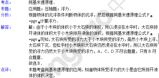 中考物理天天练试题及解析:阿基米德原理(8月03日)(2)