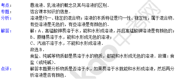 中考化学天天练试题及解析:悬浊液 乳浊液(8月03日)(2)