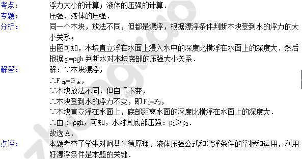 中考物理天天练试题及解析:液体的压强(8月06日)(2)