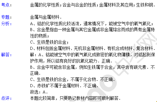 中考化学天天练试题及解析:合金的性质(8月14日)(2)