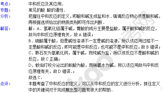 中考化学天天练试题及解析:中和反应(8月21日)(2)