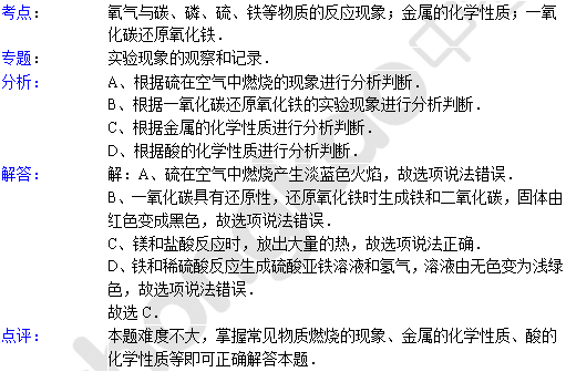 中考化学天天练试题及解析:金属的化学性质(8月22日)(2)
