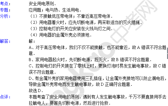 中考物理天天练试题及解析:安全用电(8月24日)(2)