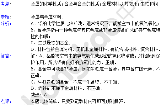 中考化学天天练试题及解析:金属的化学性质(8月28日)(2)