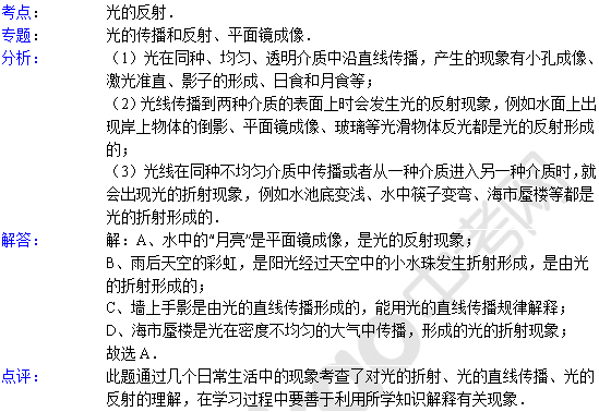 中考物理天天练试题及解析:光的反射(8月31日)(2)