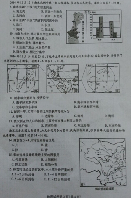 2015内江中考地理试题公布(图片版)(2)