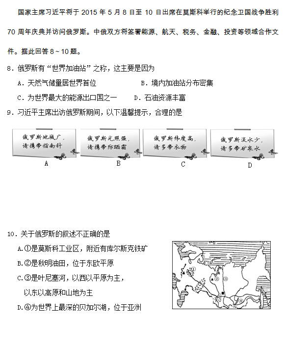 2015莱芜中考地理试题公布(图片版)(3)