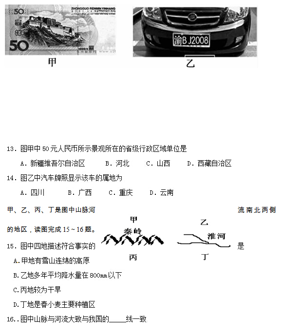 2015莱芜中考地理试题公布(图片版)(5)