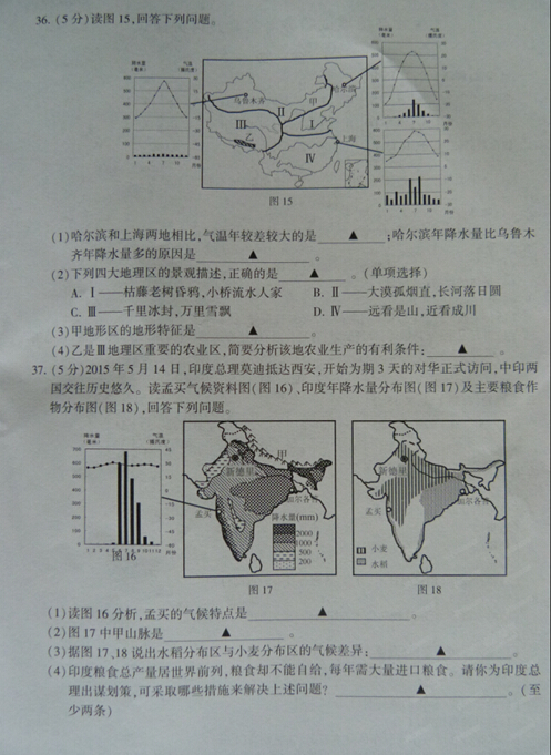 2015连云港中考地理试题公布(图片版)(3)