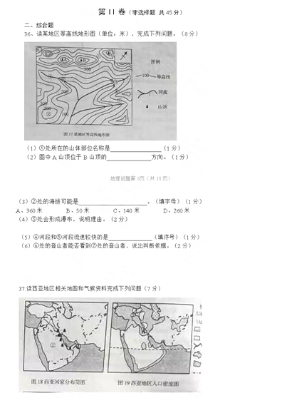 2015青岛中考地理试题公布(图片版)(7)