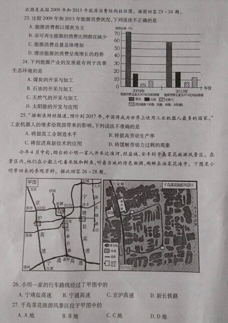 2015烟台中考地理试题公布(图片版)(5)