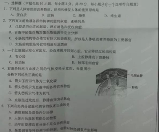 2015德阳中考生物试题公布(图片版)