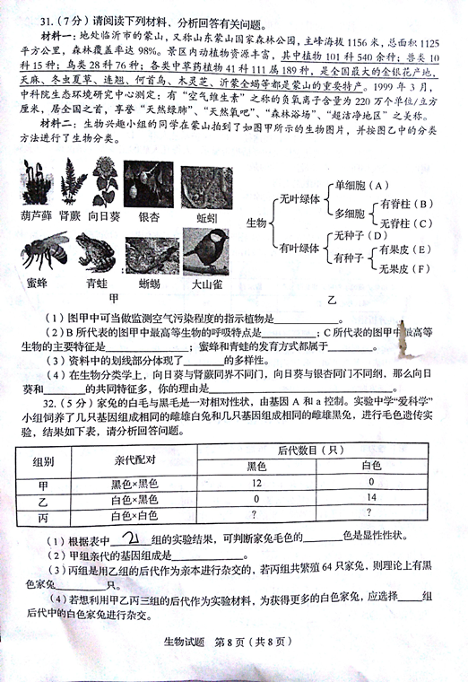 2015临沂中考生物试题公布(图片版)(8)