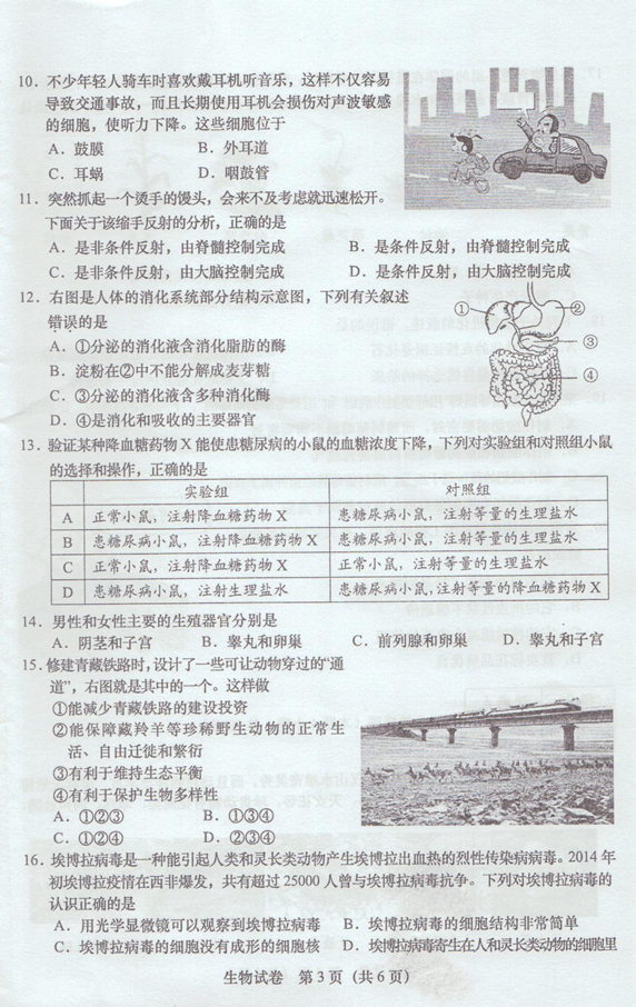 2015桐城中考生物试题公布(图片版)(3)