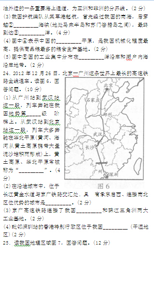 2015邵阳中考地理试题公布(图片版)(5)