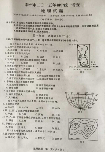 关于【泰州中考地理试题公布(图片版)】及中考、查分、择校等最新干货资讯,均在家长帮App,还有配套习题及老师免费解答问题,赶快戳我下载 >>>【家长帮App】<<< 相关推荐 2020年中考必备APP「家长帮」免费下载2020年全国中考考试时间汇总2020年全国中考报名时间汇总2020年全国中考大事记2020年中考考前冲刺各科备考全攻略历年全国各省市中考真题及答案历年中考满分作文历年中考录取分数线汇总2020年中考资讯提前看2020年中考政策解读2020年中考政策解读 点击查看更多
