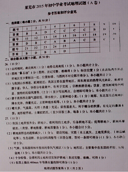 关于【莱芜中考地理试题答案公布(图片版)】及中考、查分、择校等最新干货资讯,均在家长帮App,还有配套习题及老师免费解答问题,赶快戳我下载 >>>【家长帮App】<<< 相关推荐 2020年中考必备APP「家长帮」免费下载2020年全国中考考试时间汇总2020年全国中考报名时间汇总2020年全国中考大事记2020年中考考前冲刺各科备考全攻略历年全国各省市中考真题及答案历年中考满分作文历年中考录取分数线汇总2020年中考资讯提前看2020年中考政策解读2020年中考政策解读 点击查看更多