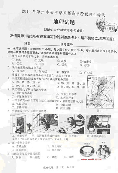关于【漳州中考地理试题公布(图片版)】及中考、查分、择校等最新干货资讯,均在家长帮App,还有配套习题及老师免费解答问题,赶快戳我下载 >>>【家长帮App】<<< 相关推荐 2020年中考必备APP「家长帮」免费下载2020年全国中考考试时间汇总2020年全国中考报名时间汇总2020年全国中考大事记2020年中考考前冲刺各科备考全攻略历年全国各省市中考真题及答案历年中考满分作文历年中考录取分数线汇总2020年中考资讯提前看2020年中考政策解读2020年中考政策解读 点击查看更多