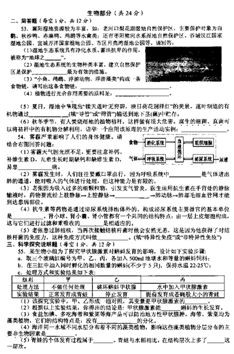 2015襄阳中考生物试题公布(图片版)(2)