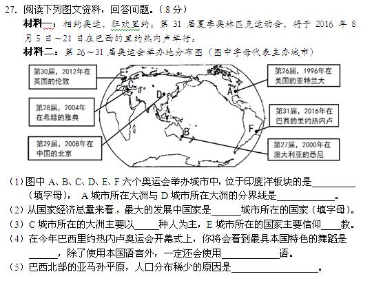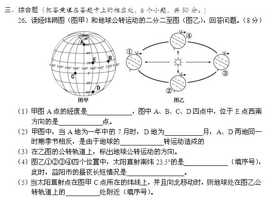 2016年益阳中考地理试题(4)