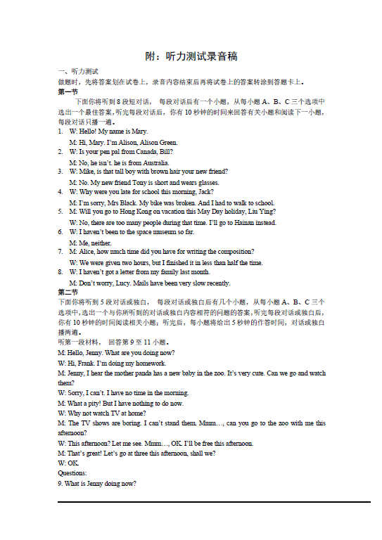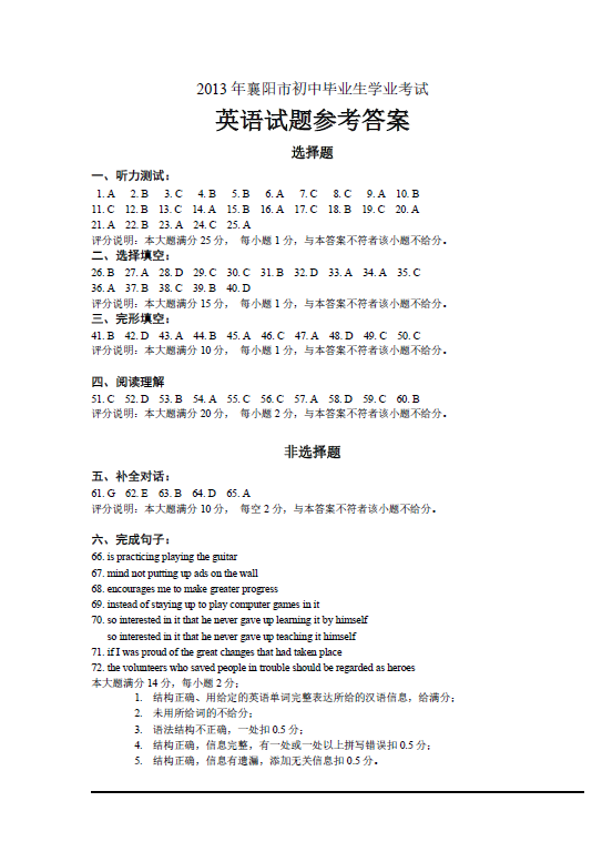 2013年湖北襄樊中考英语真题答案(图片版)