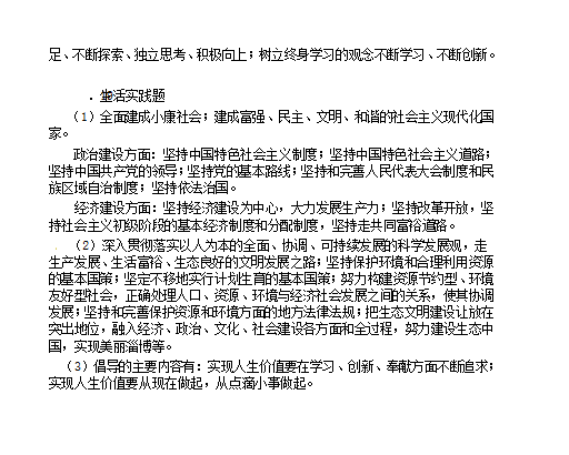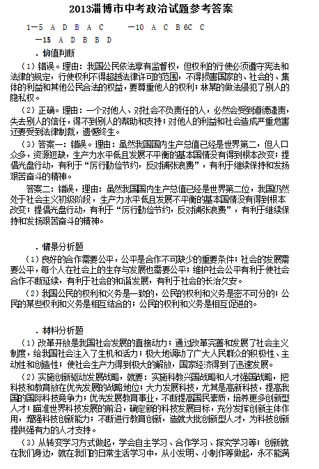 2013年山东淄博中考政治真题答案