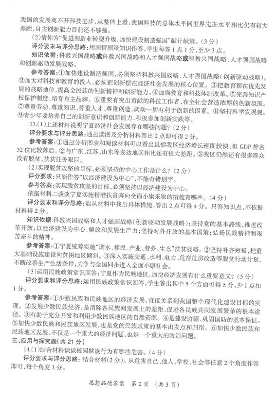 2016年宁夏中考思想品德试题答案(图片版)(2)