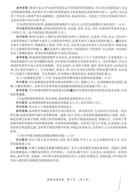 2016年宁夏中考思想品德试题答案(图片版)(3)