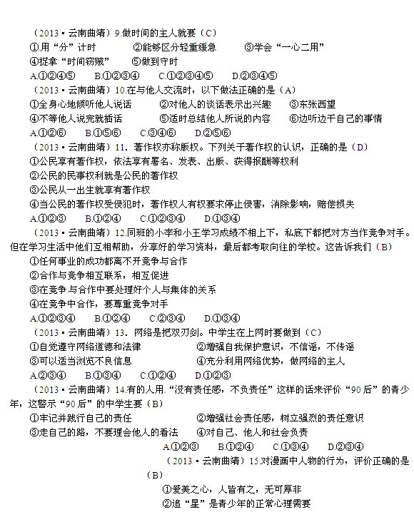 2013年云南曲靖中考思想品德真题答案(图片版)(2)