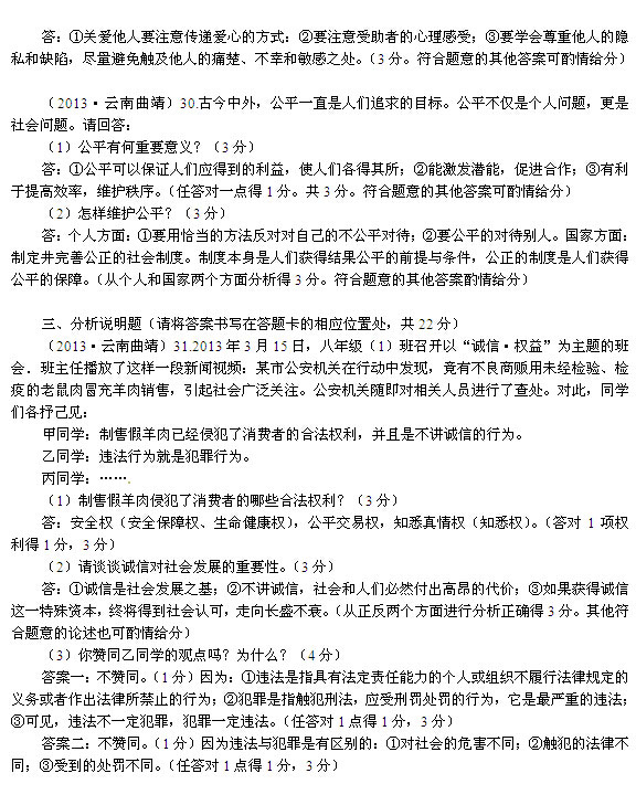 2013年云南曲靖中考思想品德真题答案(图片版)(6)